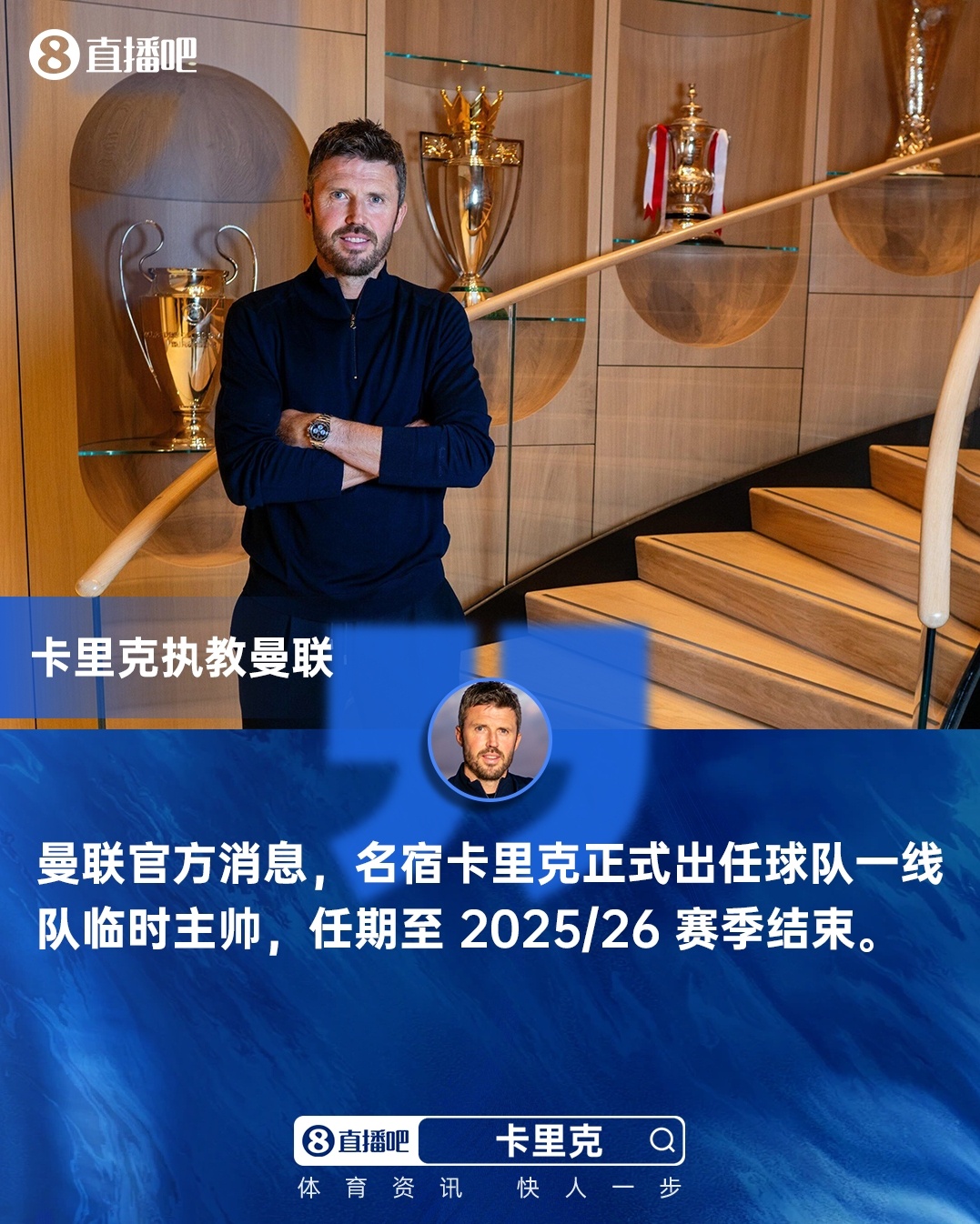 曼联发布官方公告,宣布名宿卡里克出任球队一线队临时主帅,任期至赛季结束。